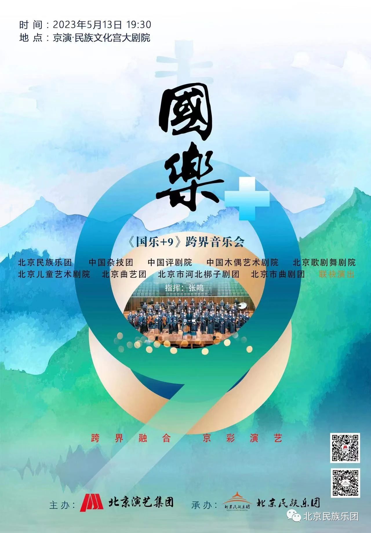 《国乐+9》跨界音乐会是北京民族乐团推出的一台融合音乐会。本场音乐会的亮点是将北京演艺集团旗下9家院团汇聚一堂,由国乐+杂技、国乐+戏剧、国乐+戏曲、国乐+曲艺、国乐+歌舞、国乐+木偶以及北京民族乐团艺术本体进行组成,集中展现北京演艺集团的文化实力。