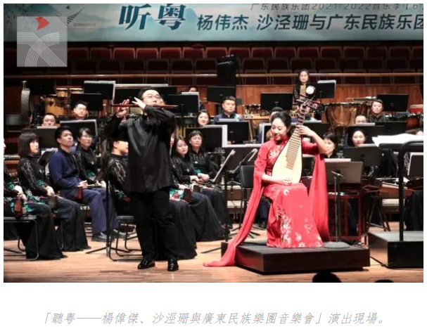 這其實是去年4月8日在廣州星海音樂廳交響樂演奏大廳演出的一場「聽粵——楊偉傑、沙涇珊與廣東民族樂團音樂會」(簡稱《聽粵》)的現場實況錄音,中國唱片集團出版發行。該音樂會是這對演奏家伉儷展示他們在音樂上不斷探索的成果,由著名指揮家侯丹平執棒引領廣東民族樂團伴奏。