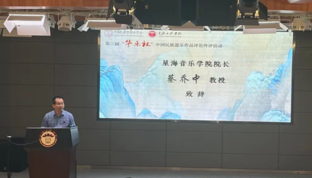 活动伊始,蔡乔中院长和蒲方教授分别进行了致辞。蔡院长首先强调习近平总书记在“文艺工作座谈会”中作出要“高度重视和切实加强文艺评论工作”的重要指示,并表示星海音乐学院此次与中国民族管弦乐学会、《人民音乐》共同主办第三届评论活动有着重要意义和责任。蔡院长进而介绍了星海音乐学院近年来在岭南音乐建设方面的成果,以及坚持艺术精品创作和赓续岭南文脉的办学特色。蒲方教授在致辞中简要回顾了中国民族管弦乐学会理论评论委员会的历史,并对主办方和承办方对于本次活动的筹办情况、活动的初评和终评的全部过程作以介绍。