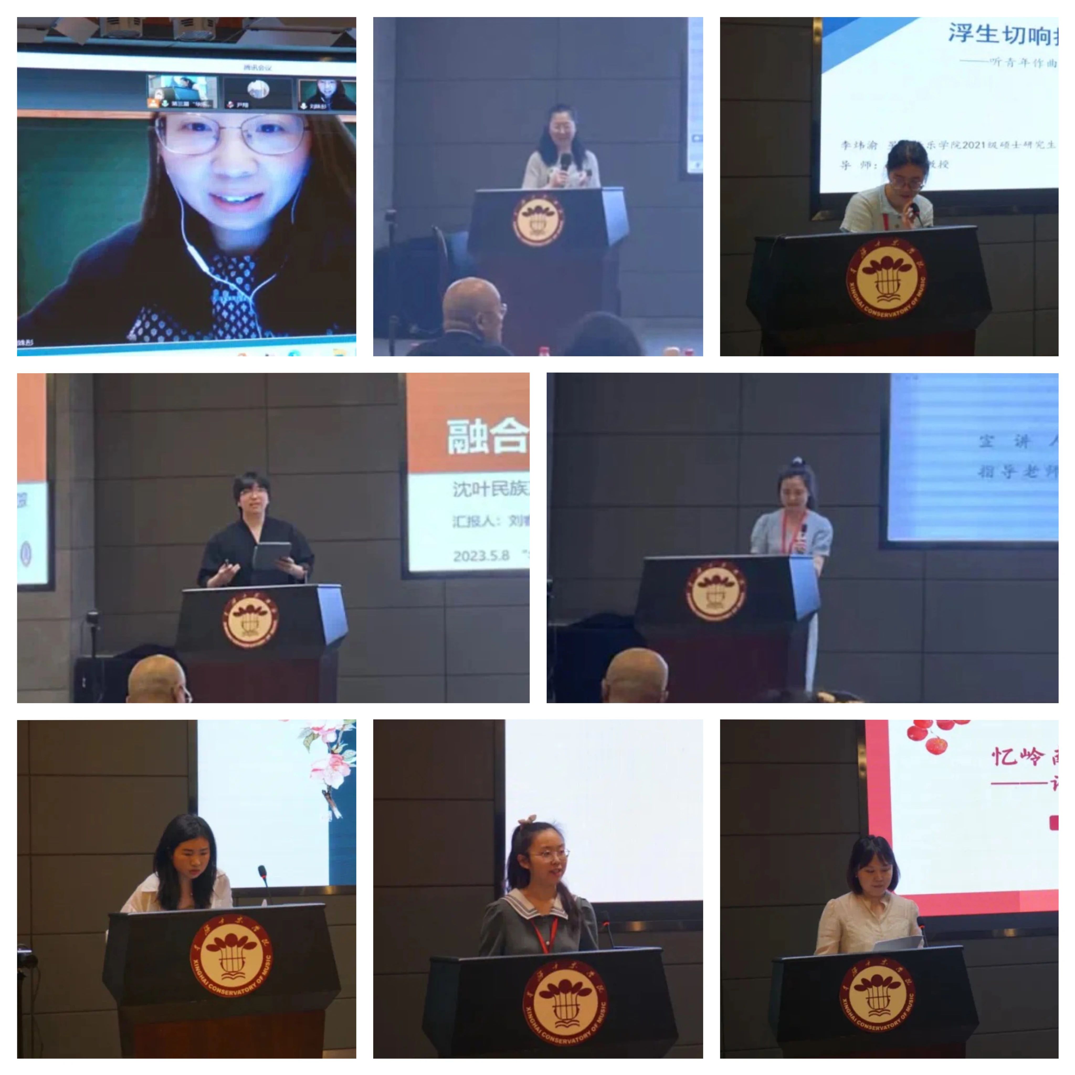 上午场率先由六位选手宣讲。刘姝彤(上海音乐学院)对《唐朝传来的音乐》中的核心音调、乐器与编制以及作曲技术等方面进行分析与评论;尹翔(四川音乐学院)围绕《四季留园》“江南气韵何以生成”这一问题,从作品意境、与昆曲的内在联系、民族管弦乐写作特点三方面进行评析;李炜渝(星海音乐学院)着重于分析《平仄弦趣》作品中特色乐器头弦的使用与作品之“趣”的体现,由此引出对问题的进一步思考;刘睿昕(上海音乐学院)立足于《望海潮·宝珠洞》的作曲技法,围绕“融合与分离”对作品的配器手法进行了详细阐释;邓婕(星海音乐学院)结合《弦意岭南》的感性体验以及对音乐形态的理性认识,分析总结了作品中所体现的岭南音乐特征;郑婉纯(上海音乐学院)对《大湾情缘》中所体现出的曲调、民俗、湾区文化等特征进行评述,并探讨了传统与现代这一问题。