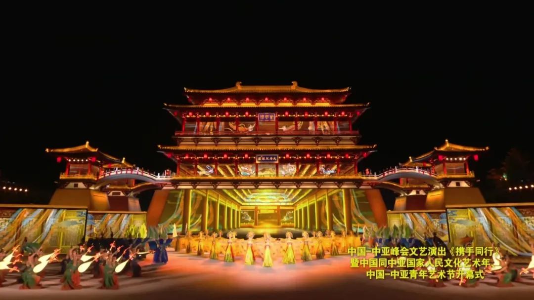 5月18日晚,中国—中亚峰会文艺演出《携手同行》暨中国同中亚国家人民文化艺术年、中国—中亚青年艺术节开幕式在西安大唐芙蓉园举行。