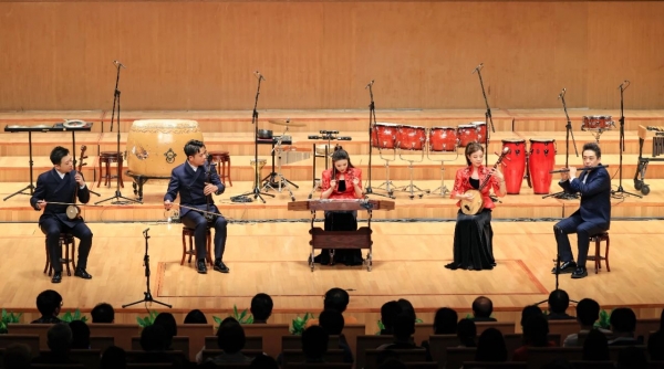5月24日,中央民族乐团《宝藏国乐俪人行与青衫渡室内乐音乐会》在上海东方艺术中心音乐厅上演,此次演出不仅是中央宣传部文艺局、文化和旅游部艺术司、中国音乐家协会、中共上海市委宣传部共同主办,中国上海国际艺术节中心承办的“时代交响——全国优秀乐团邀请展演”的重要演出,更是中央民族乐团《宝藏国乐》系列在沪首演。音乐会由中央民族乐团的两支充满活力的室内乐团“俪人行”与"青衫渡“联袂演绎,为观众带来了令人耳目一新的国乐舞台。