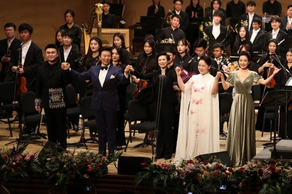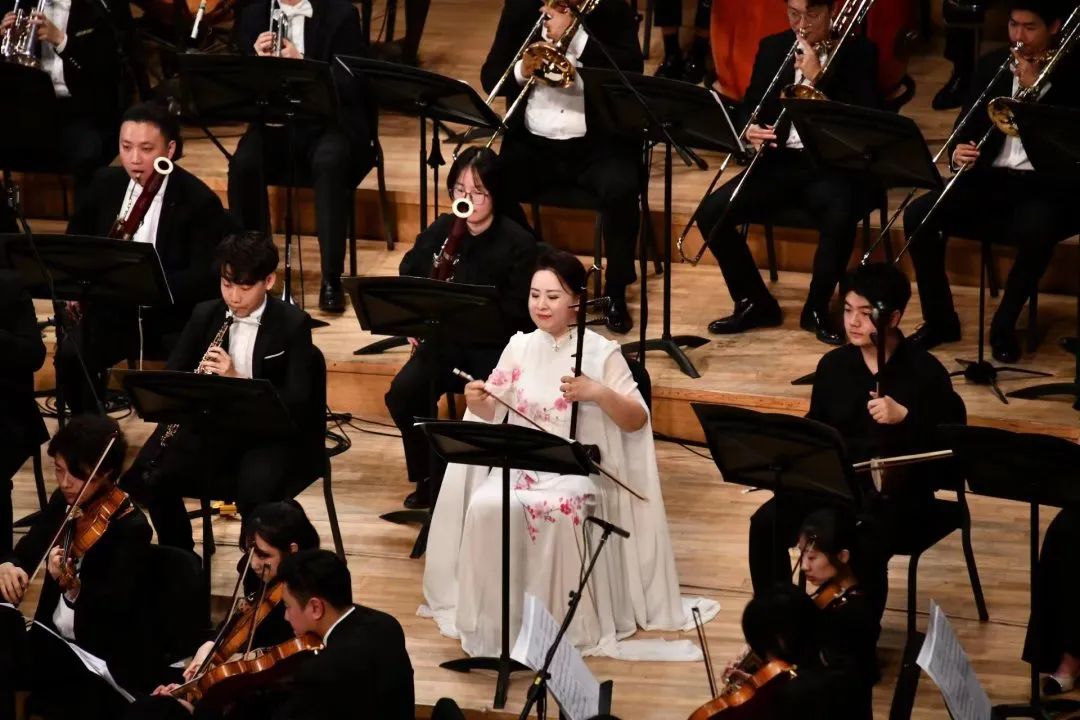 在本场音乐会上,“新一代杰出指挥家”陈琳携手著名男高音歌唱家、天津音乐学院副院长王宏伟,天津音乐学院教授、小提琴演奏家宋强,青年女高音歌唱家吴梦雪、竹笛演奏家李乐、二胡演奏家赵元春,联袂天津音乐学院青年交响乐团、青年合唱团,合作演绎著名作曲家赵季平的经典作品。整场音乐会座无虚席,掌声雷动。