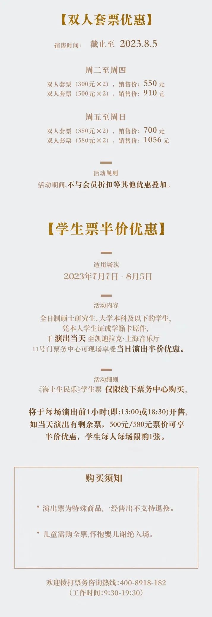 凡购买过 ①《海上生民乐》前三轮中任意一场音乐会+本轮音乐会任意场次;② 本轮音乐会任意两场次;