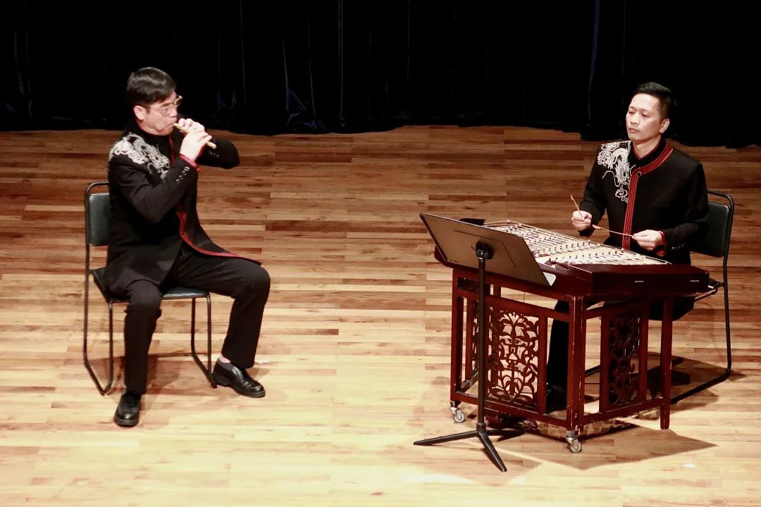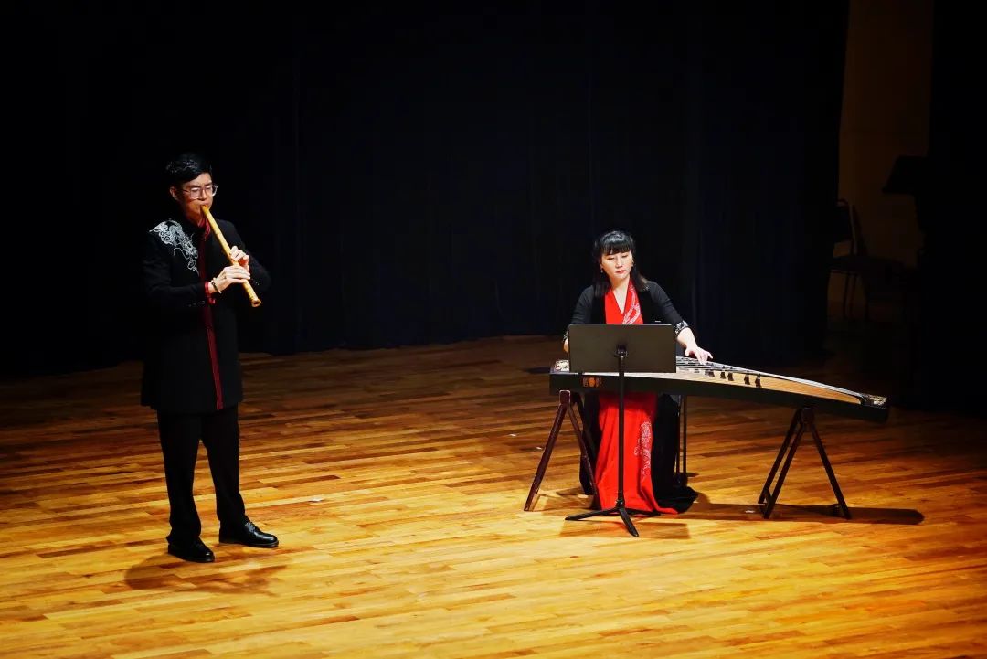 接着,广东音乐名曲《双声恨》奏响,迂回凄清的箫声与古筝的柔和相互交织,诉说着牛郎织女的悲情故事,台下观众安静聆听,为之动容。