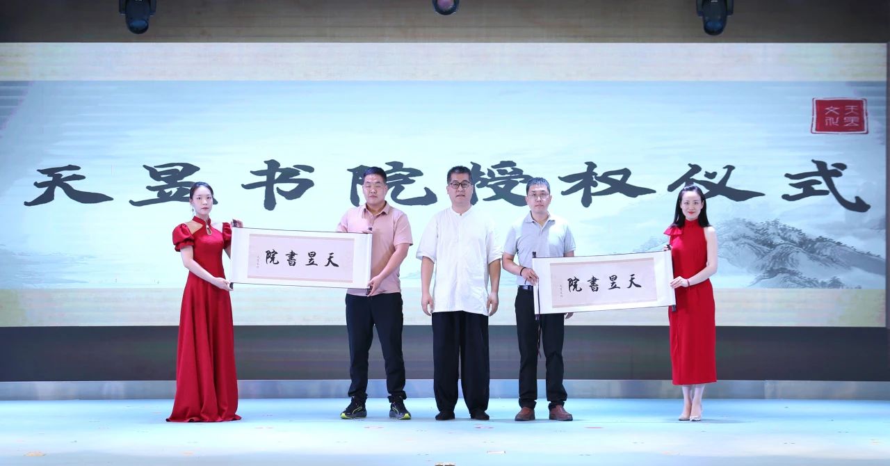 天昱书院的成立,是我们作为弘扬传统文化,吸纳更多社会组织、机构力量的一个文化组织,逐步有着更多能量的源泉赋予。我们来做好传统文化传承与发展的事业,我们通过酌选出来的天昱书院成员,内蒙金色博文校外托管园陈峰先生和天昱国乐艺术中心(肃宁)田金光先生,授予他们“天昱书院”的授权卷轴。