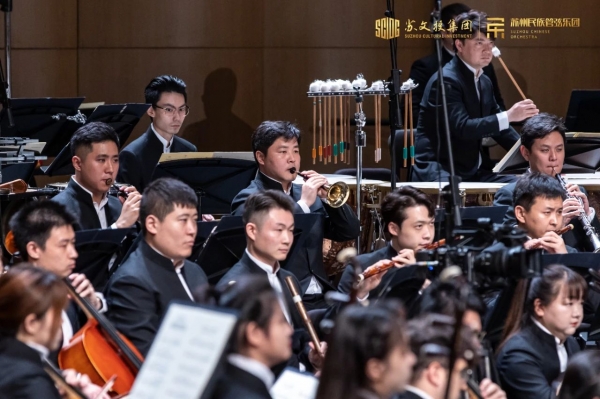 下半场,杨靖奏响《第二琵琶协奏曲》,乐曲融合了苏州评弹的音乐元素,优美的琵琶声如江水般流动,以凝练的音乐线条和舒展的和声气质,激发听众丰富的想象力,传达了宁静而恬淡的意境;音乐会最后,《唐响》将气氛推至高潮,不断变换的旋律带领观众在虚幻和现实之间穿梭,好似瞬间穿越到了辉煌的大唐盛世,又仿佛回到了现代都市之中。在经历了一场荡气回肠的中国管弦乐穿越之旅后,现场响起了如雷鸣般经久不息的掌声,在一片喝彩声中,音乐会圆满落下帷幕。