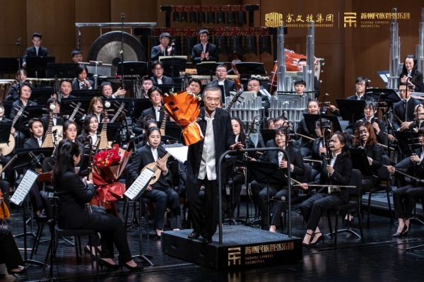 在《将军令》的激昂里感受热烈与振奋,在《第二琵琶协奏曲》的诗意中感受中西音乐文化的碰撞融合……昨晚,「阎惠昌的中乐经典」大型音乐会在苏州民族管弦乐团音乐厅上演。这是著名指挥家、香港中乐团艺术总监兼终身指挥阎惠昌与苏州民族管弦乐团的首场合作音乐会,特邀著名琵琶演奏家杨靖加盟,演绎了多首脍炙人口、流传久远的中乐经典曲目,带来了一场精彩纷呈的音乐盛宴。