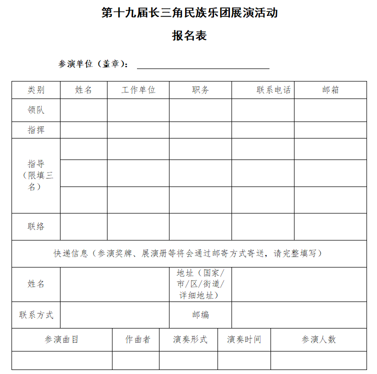 3.参演单位将获得由第十九届长三角民族乐团展演活动组委会特制的奖状,专家评委对每个展演团队演奏提出书面指导建议。