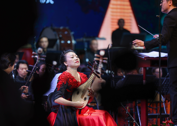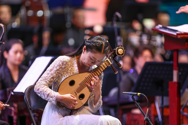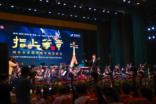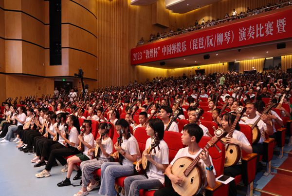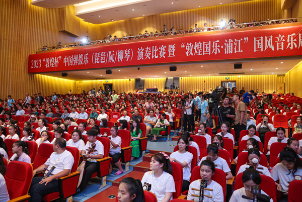 2023“敦煌杯”中国弹拨乐(琵琶/阮/柳琴)演奏比赛暨“敦煌国乐·浦江”国风音乐周圆满落幕。由葛亚南执棒指挥,中国广播民族乐团演奏,多位海内外著名演奏家参演的“指上华章”国乐名家协奏曲专场音乐会精彩上演。乐团与评委团队、参赛选手联袂演出了千人合奏《我和我的祖国》,音乐会开场就将现场气氛推向了高潮。