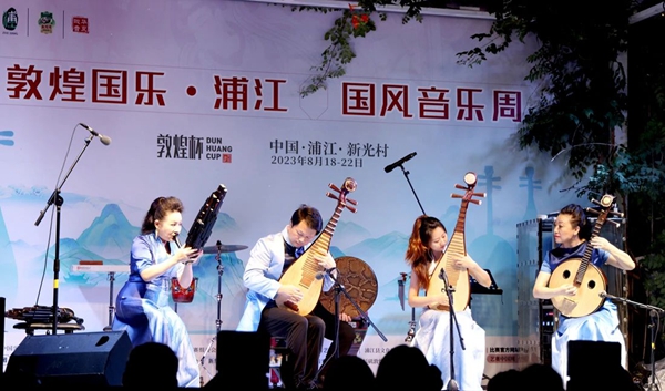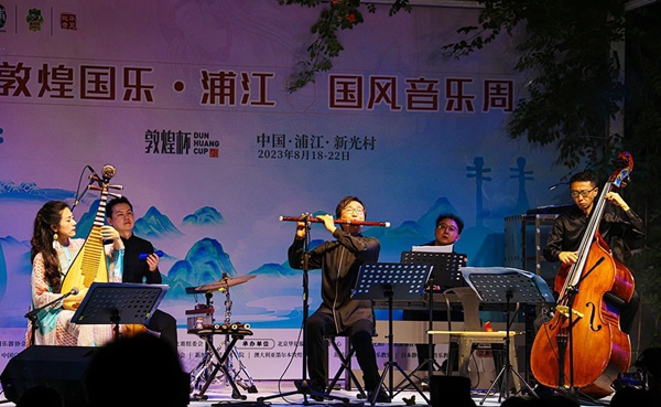“敦煌国乐 浦江”国风音乐周举办期间,中国广播民族乐团“中国印象”演奏家小组和“炫乐团”走进浦江古村落演出两场音乐会,让当地百姓在家门口就能欣赏到国家级艺术院团的高水准演出,将民族音乐的种子深深植根于百姓的心中。