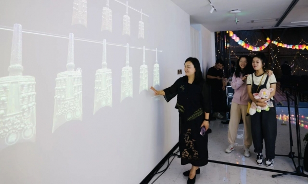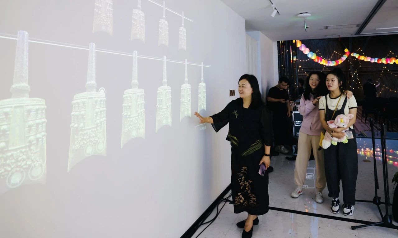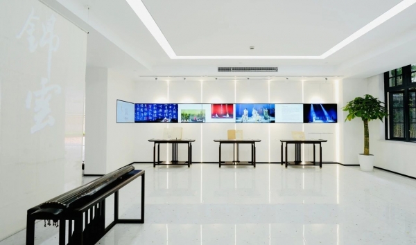 “锦云”由左右两边各7个连屏组成长卷,以动态形式展示乐团发展历程、以及经典品牌演出剧目。“琼篇”LED大屏向来宾展示乐团视频短片;互动式编钟通过《春江花月夜》的音乐片段让观众沉浸式体验千年编钟击打乐趣。