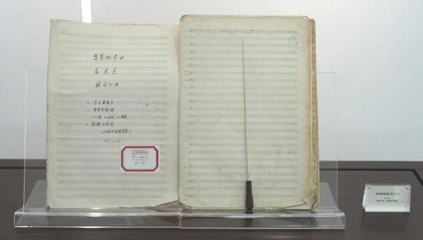 顾冠仁先生特意捐赠了他于1979年创作的琵琶协奏曲《花木兰》手稿,1959年与马圣龙共同创作的《东海渔歌》等手稿和曾经陪伴他多年指挥上海民族乐团的指挥棒。