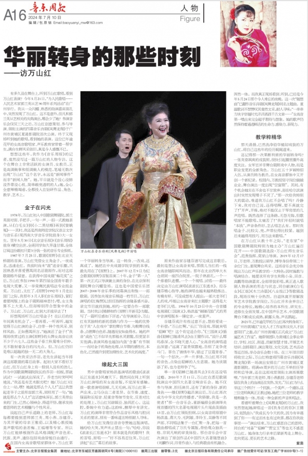 那时《音乐周报》的人不多,大都是采编合一。志音最初编的是什么版我不知道,她说有一段时间编“新作(歌词歌曲)选登”,我印象深的是她编的乐评版,印象更深的是改变版式之后的乐评版。志音提升为副总编后,乐评版的编辑加上了傅显舟。二人是大学同学,后来同室编报,工作虽是辛苦,好在有显舟兄的“川普”话和川味英语可以调剂严肃的办公气氛。这样的氛围,这样的版面,我自然乐得为其供稿。犹记2000年,万山红推出《中国歌剧经典片段专场》,我和志音在保利剧院相遇时说的第一句话,“我给你们稿子。”她说:“我给你留版面。”到了2024年,万山红在广州举办专场演唱会,受资金限制,只请了志音一人到场写乐评。志音观后文章给了某杂志,与我很熟的杂志编辑请我做了编辑加工,且约定保密。此刻泄密自有理由:万山红听闻志音去世的消息后不敢相信,打来电话向我求证,知消息不假后,彼此不免唏嘘。