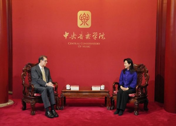 10月13日上午,中央音乐学院于红梅院长在中央音乐学院南大殿会见费城交响乐团总裁兼首席执行官睿恩德一行,围绕加强双方合作事宜进行了友好交流。
