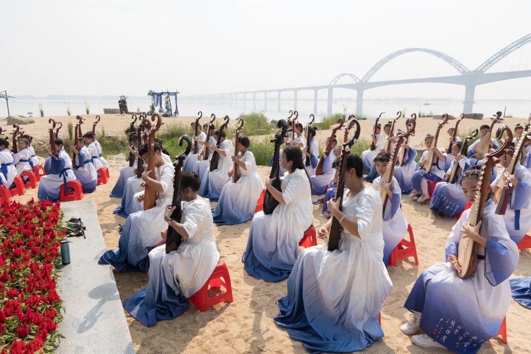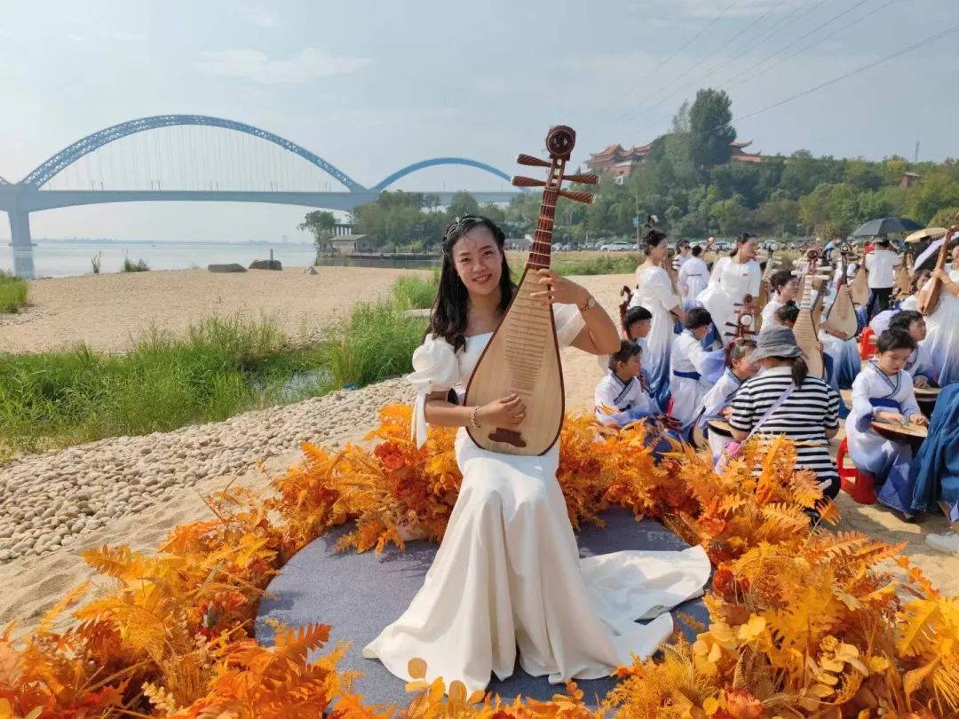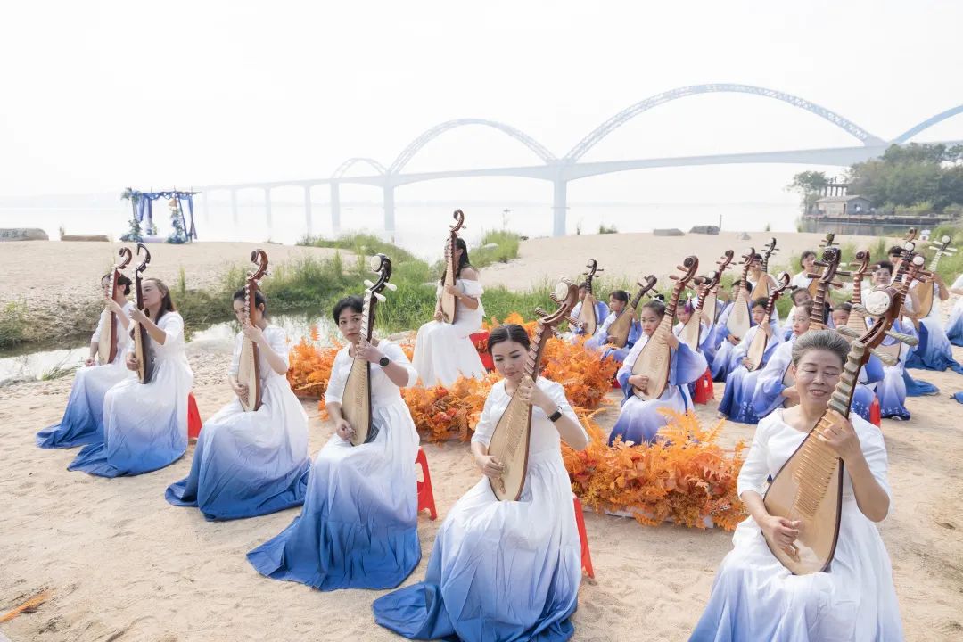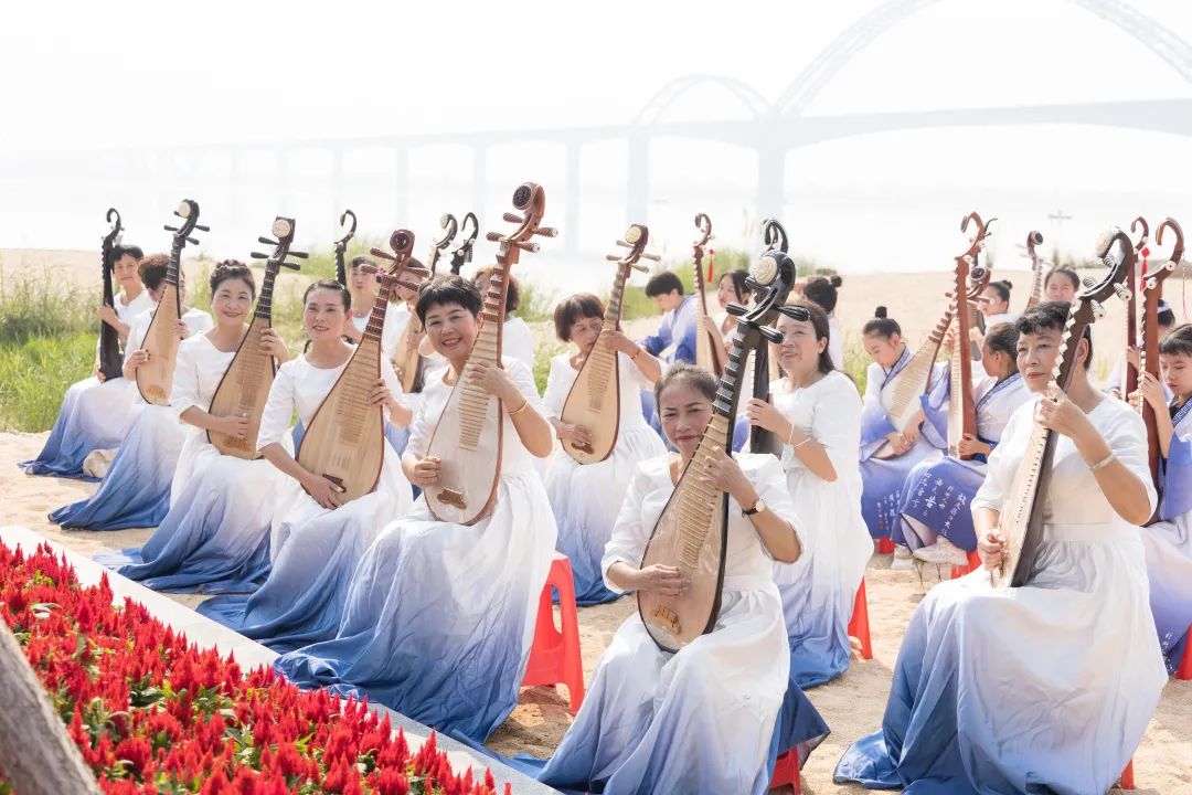 《爱祖国 爱家乡》由“五乐琵琶”总经理汪婷倾情领奏,百余名琵琶人共同演奏。悠扬动听的琵琶声响彻了凤林古渡,我们用最美琴声祝福伟大的祖国!