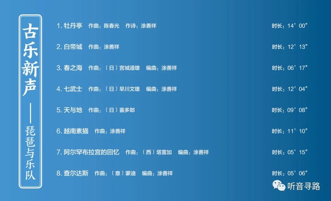 2022年,涂善祥老师的从艺五十周年纪念专辑《四海拨华章——涂善祥中国琵琶的世界》由人民音乐出版社正式出版。这套专辑由6个系列、48首作品组成。每个系列都有不同的主题: