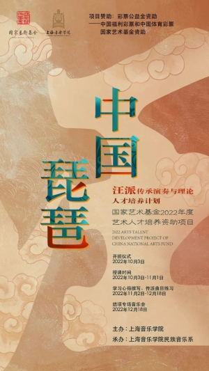 “琵琶汪派演奏与理论人才培养”是国家艺术基金2022年度资助的艺术人才培养项目,以上海音乐学院为项目实施主体。