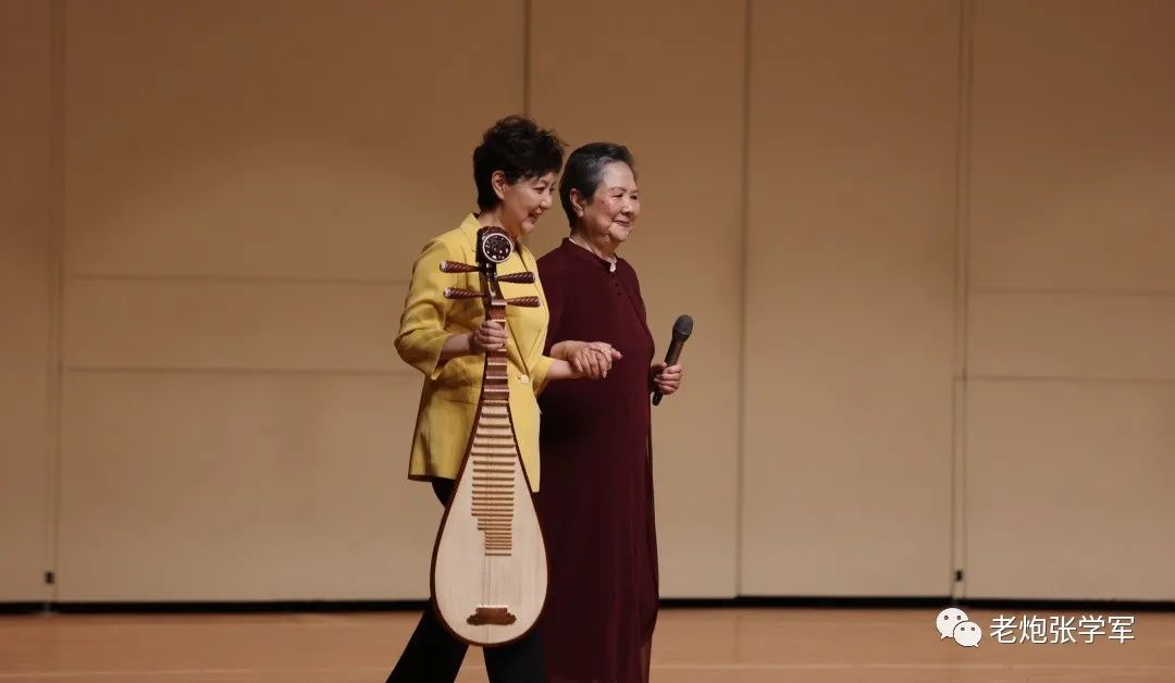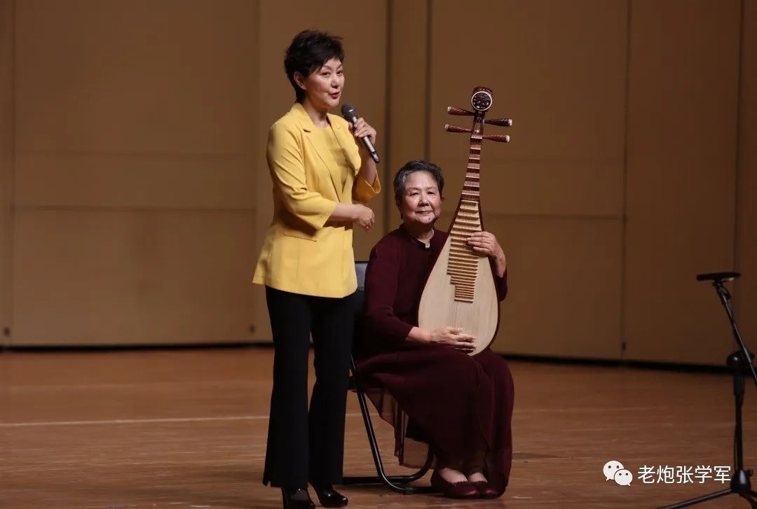 当晚的音乐会由项目负责人、中央音乐学院民乐系主任兼非物质文化遗产保护与研究中心主任章红艳教授主持。音乐会以独奏、齐奏、领奏的形式展示《满将军令》《阳春古曲》《浔阳琵琶》《平沙落雁》《塞上曲》《郁轮袍》《淮阴平楚》等平湖派代表性曲目。音乐会现场精彩场面不断,郭少华老师独奏了两首作品《阳春古曲》《郁轮袍》,张鸣老师演奏的《浔阳琵琶》,可谓是原汁原味;任畅老师携西安音乐学院古筝演奏家魏月明演奏根据平湖派独奏曲编创的琵琶、古筝二重奏《塞上曲》平添了风雅的古韵。此外,8位学员齐奏的《平沙落雁》和全体学员共同演奏的《淮阴平楚》显示了极高的水准和艺术造诣。平湖派老前辈的表演环节就更是令人震撼和感动,85岁高龄的曾庆蓉老师演奏了她本人创作的琵琶曲《红河夜景》,而83岁的王劲梅老师头一天不慎摔倒缝了六针,坚持登台演奏《塞上曲》选段,尤其是章红艳老师搀扶着老先生上台的情景令人心升感动。