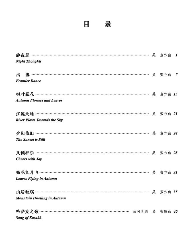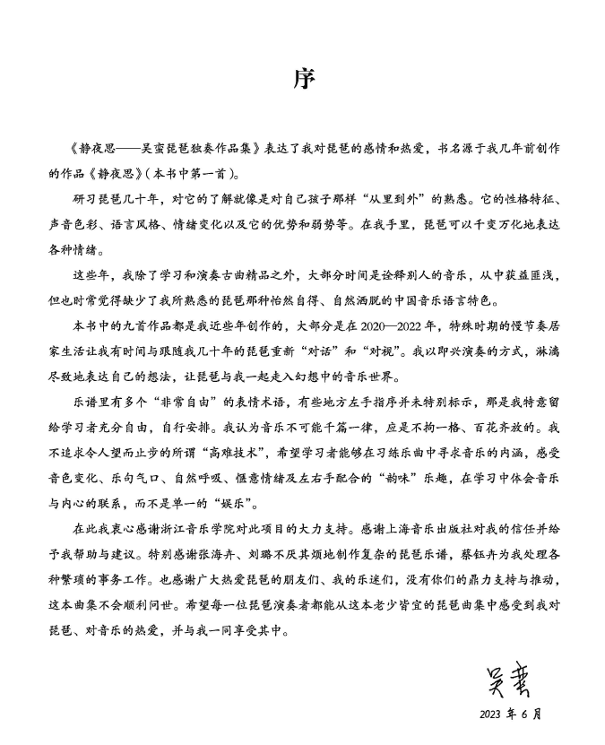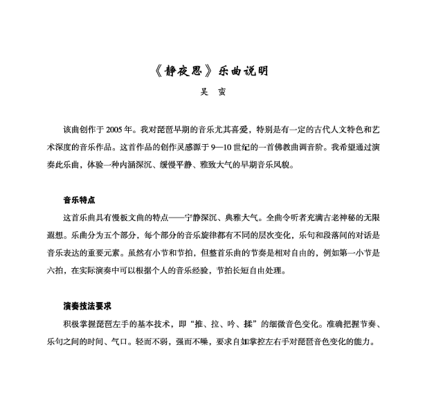 图书简介:全书收集了吴蛮创作并演奏的琵琶独奏作品九首,具有吴氏独特的艺术风格,充分融入了吴蛮对琵琶音乐的“古与今”“传承与发展”的演奏及音乐理念的实践。扫码可购音频。