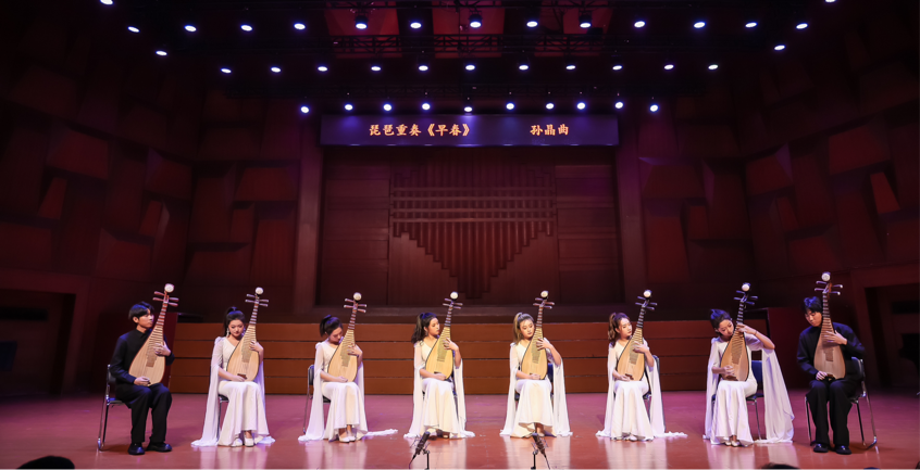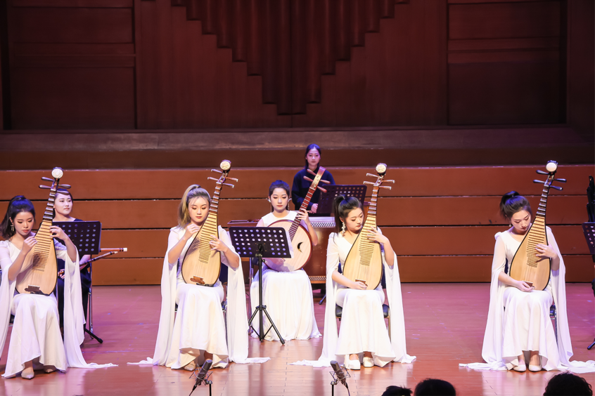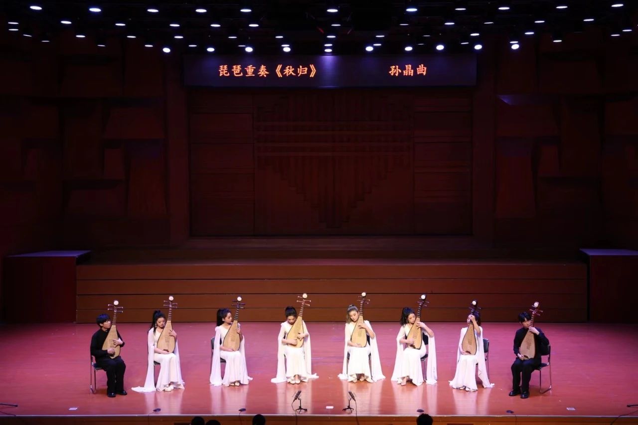 10月11日,浙江音乐学院国乐系杨婧副教授与婧拢乐琵琶乐团受武汉音乐学院中乐系邀请,在武汉音乐学院编钟厅上演了“拢弦弄韵——琵琶重奏音乐会”。本次音乐会由杨婧副教授带领学生李怡萱、冀诗瑶、戴菱、王理、乔纯高、乔纯楼、王笛伊,师生共8人与武汉音乐学院中乐系讲师黎芸与东方云朵琵琶组合共同出演。通过对多首风格迥异的琵琶作品的优秀演绎,我系师生向武汉音乐学院的领导、师生们展现了我系琵琶专业的优秀教学成果,获得了现场观众们的一致好评。