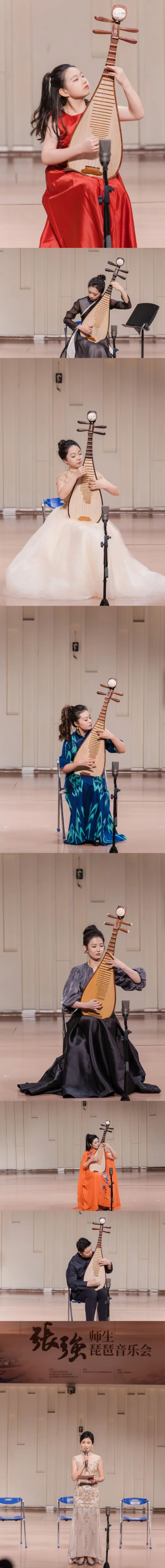本场师生音乐会宛如一颗璀璨的明珠在音乐的星空中熠熠生辉,吸引了全国各地众多音乐爱好者前来聆听。音乐会参演者三十三人,有专业音乐院校的教授、副教授,专业演奏团体的琵琶首席,其中有多个琵琶赛事的金奖获得者,年龄横跨48岁,最小的年仅11岁。他们在舞台上展现出了扎实的基本功和独特的音乐理解,在张强先生的悉心栽培下,逐渐绽放出属于自己的光彩。