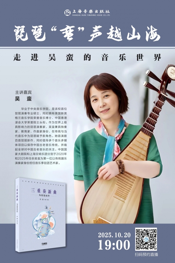 今年,吴蛮主编、委约的《三重奏新曲——为琵琶而作》,向您展示十位中国“90后”新锐作曲家创作的具有丰富多元创作风格的全新琵琶三重奏作品。