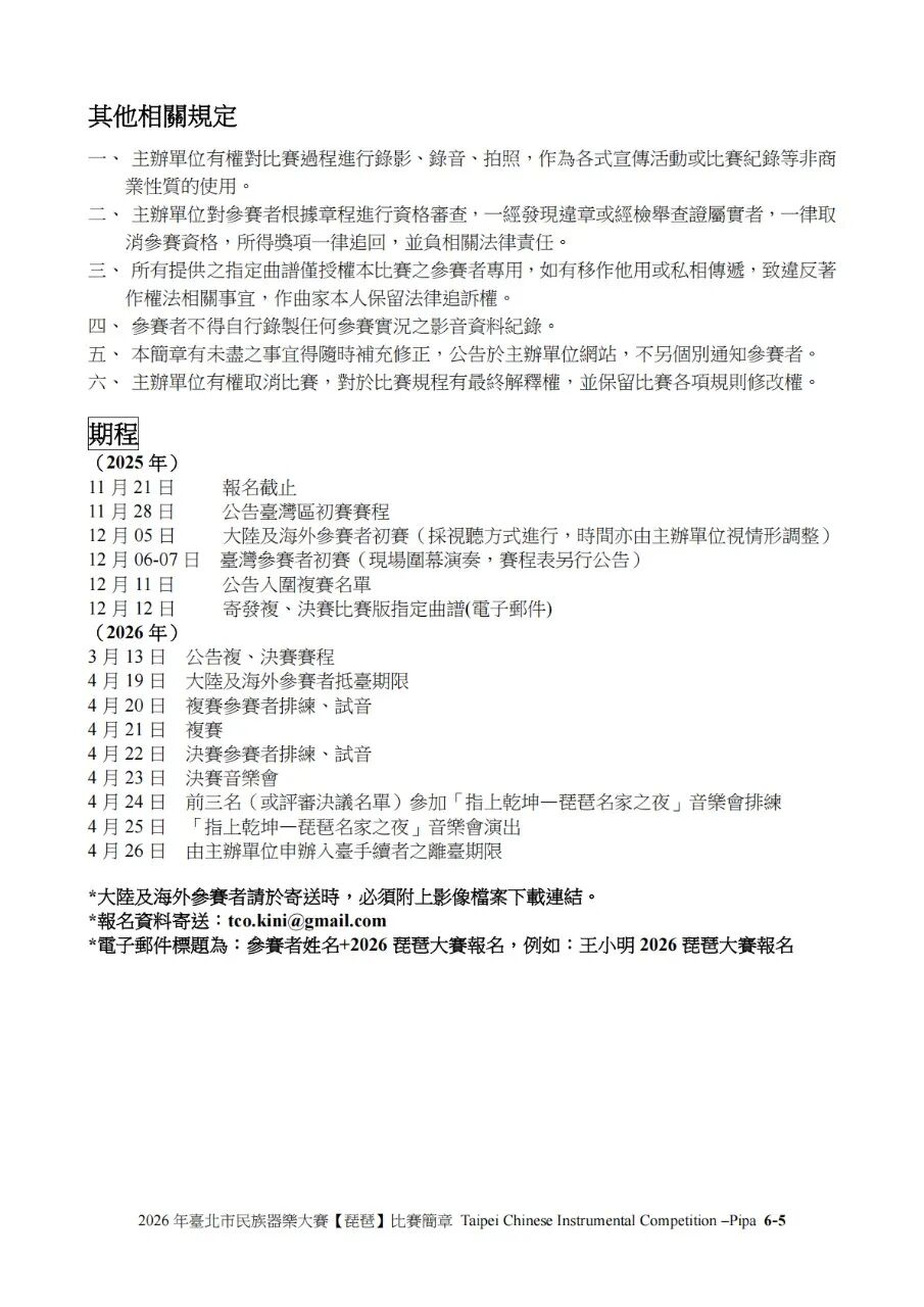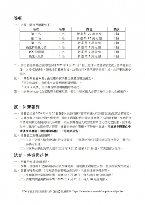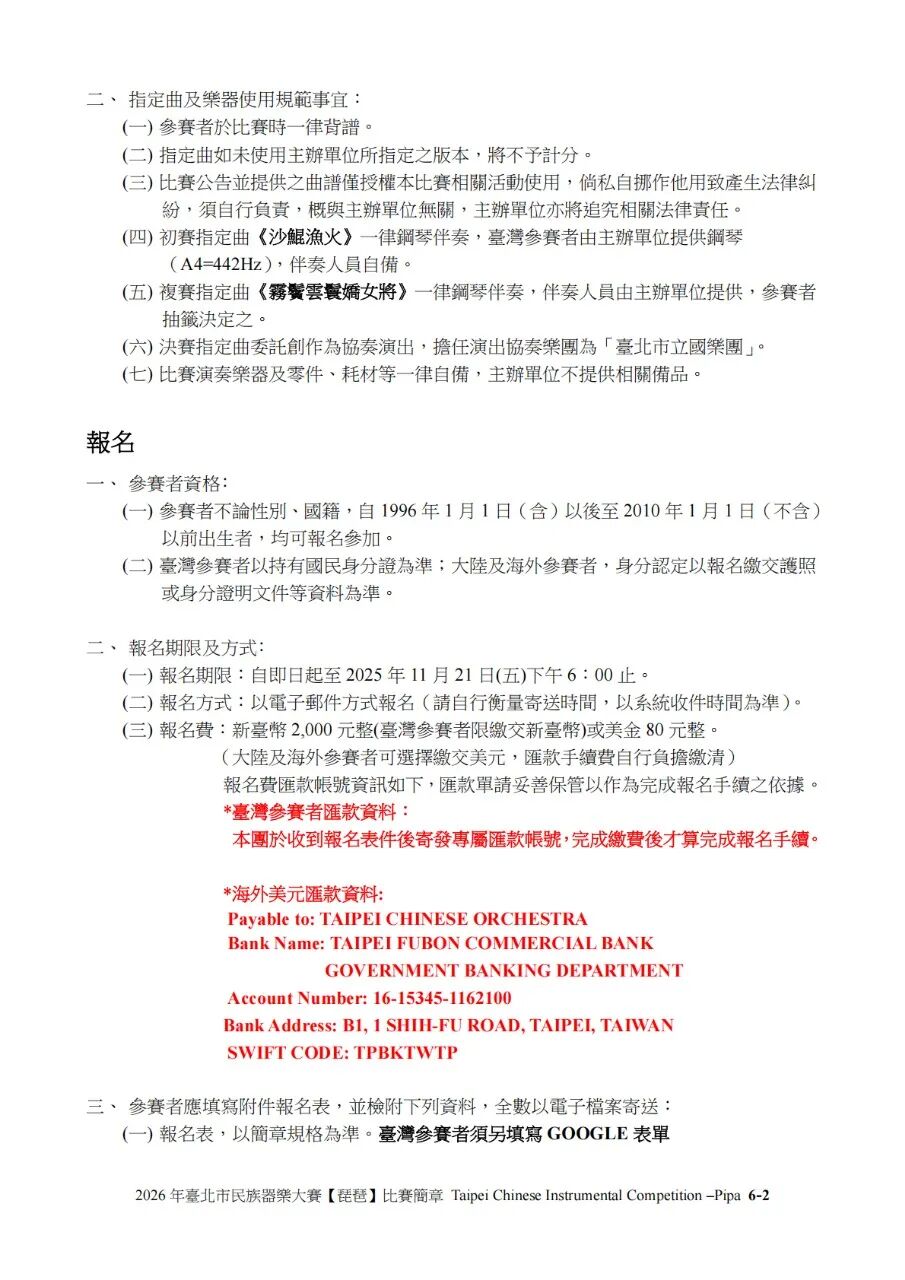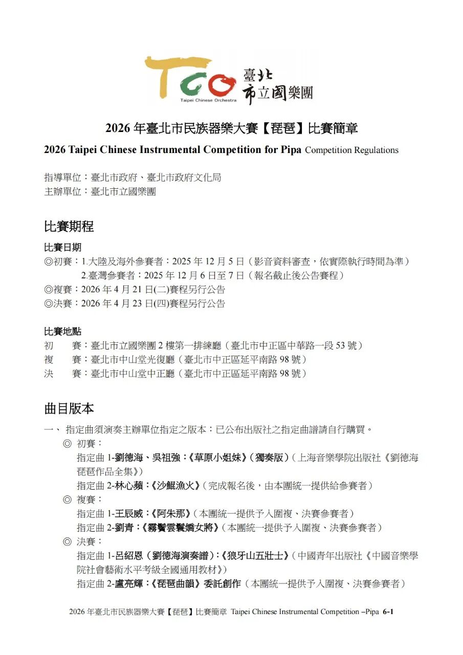 2026年台北市民族器乐大赛【琵琶】比赛简章