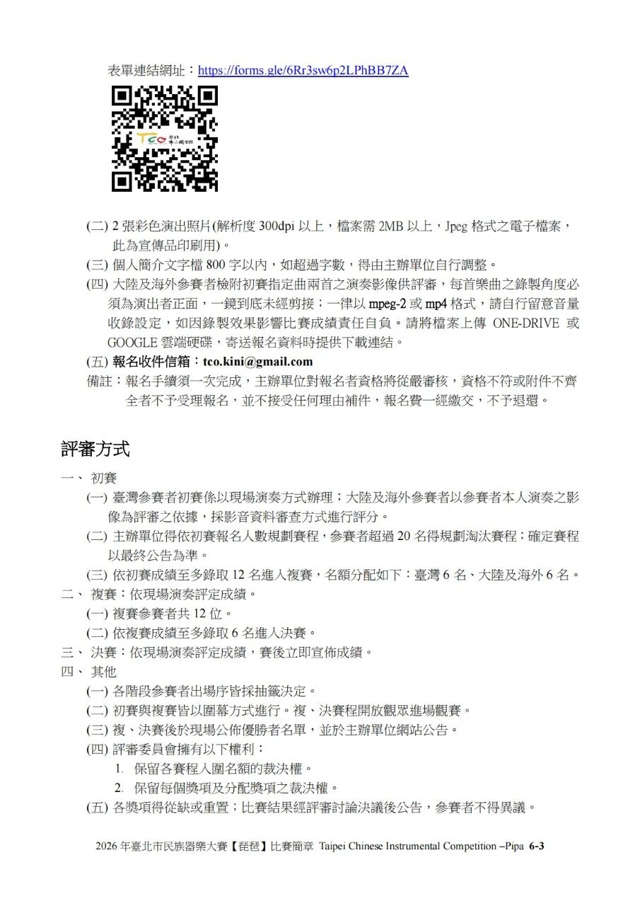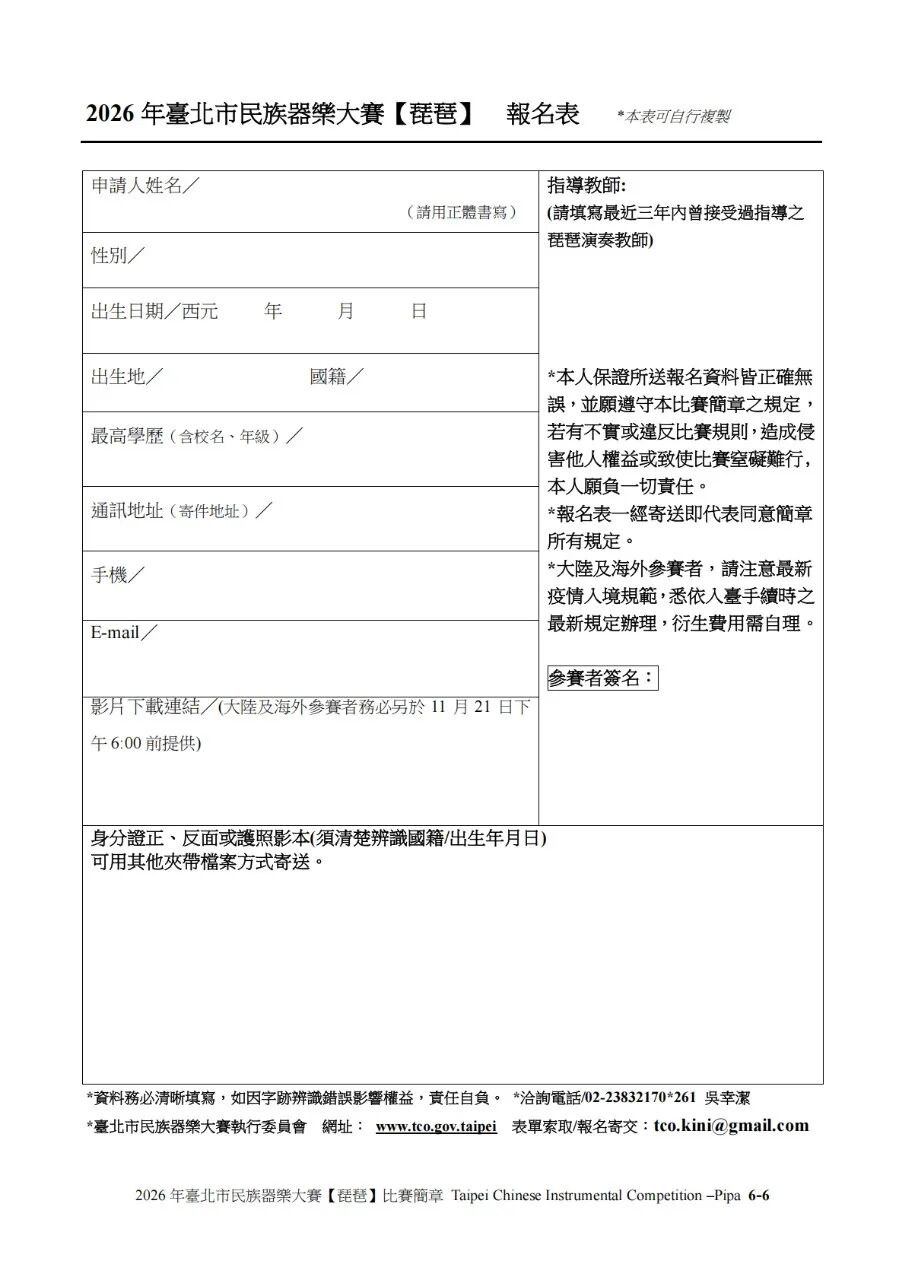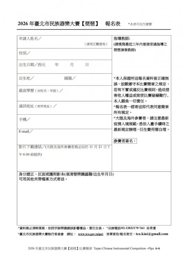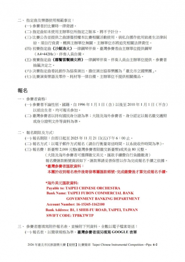 2026年台北市民族器乐大赛【琵琶】比赛简章