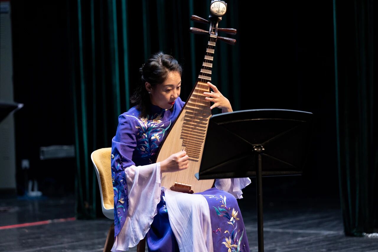 沙泾珊女士演绎的琵琶套曲《三国》(天津首演)气势恢宏,金戈铁马之气在弦上奔涌,令人心潮澎湃。而她创作的《秋影晚霞》,则以细腻婉转的粤调笔触,勾勒出岭南秋日的宁静与诗意,用音符绘就了一幅晚霞浸染的南国画卷。