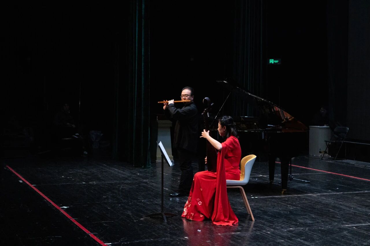 音乐会的核心曲目——杨伟杰教授荣获国家艺术基金2024年度舞台艺术创作资助的项目《诗乡》,当竹笛的悠远意境与钢琴的现代典雅相互交融,既传递出古典诗篇中的隽永情怀,也传达出当代人对精神原乡的深切眷恋。曲终之时,现场先是一片触动心灵的静默,继而爆发出热烈而持久的掌声。