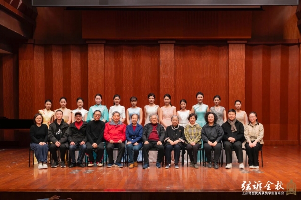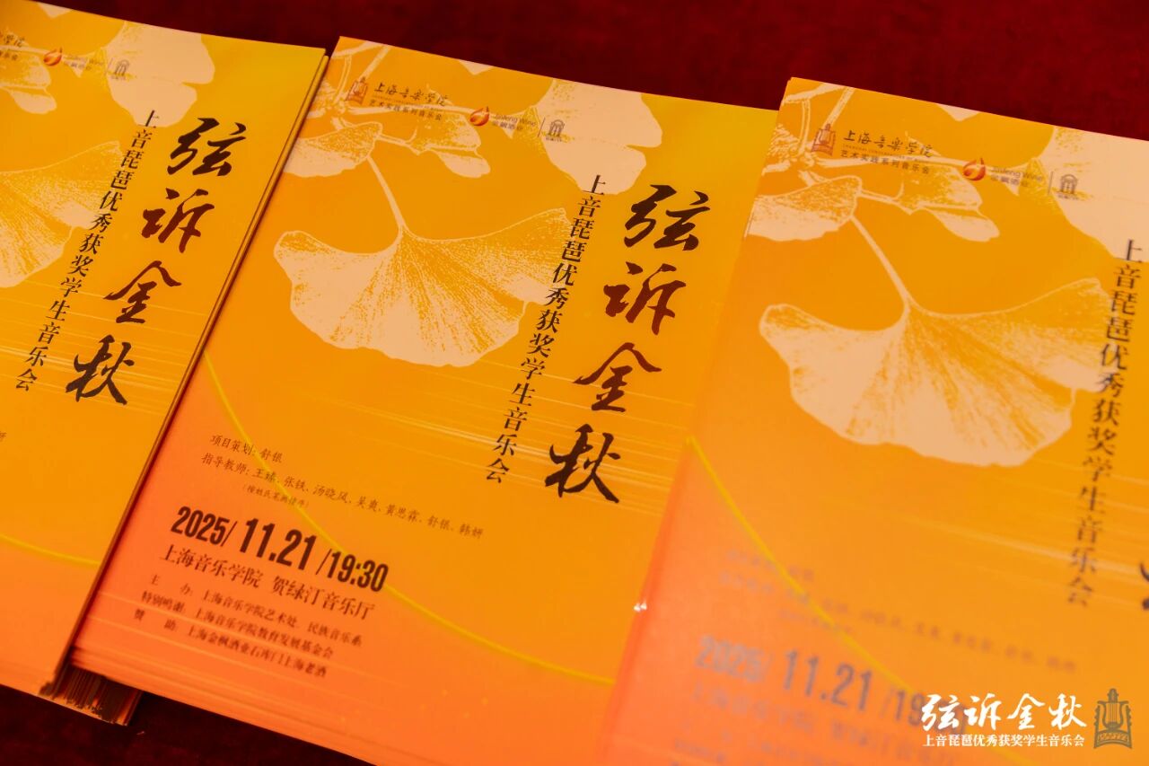 深秋时节,音乐与时光交织成诗。2025年11月21日晚,“弦诉金秋”——上音琵琶优秀获奖学生音乐会在上海音乐学院贺绿汀音乐厅温情上演。本场音乐会由上海音乐学院艺术处、民族音乐系联合主办,舒银老师倾情策划,汇聚了舒银和张铁、王臻、汤晓风、吴爽、韩妍、黄思霖七位老师指导的学生阵容。
