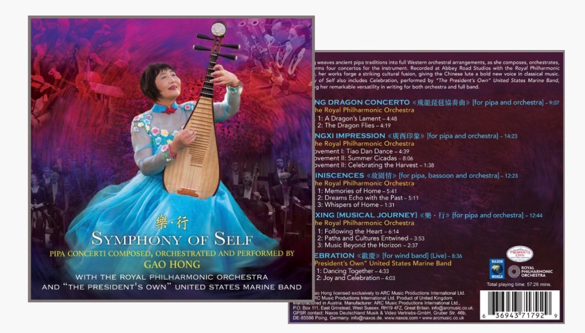 专辑《乐·行》(Symphony of Self) 是四首协奏曲由英国皇家爱乐乐团和高虹在传奇的伦敦艾比路录音室录制,专辑中还收录了由美国总统军乐团(The President’s Own United States Marine Band)世界首演、演奏的高虹作品《欢庆》(Celebration)的现场录音。整张专辑将于2026年1月23日由拿索斯唱片公司面向全球发行。这张专辑汇集了高虹作曲、配器、演奏的四首原创琵琶协奏曲和铜管乐作品构成,展现了琵琶跨越文化边界的广阔表现力,也体现了高虹近年来在创作与艺术表达上的全新高度。