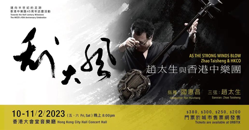 2023年2月10-11日,《刮大风 - 赵太生与香港中乐团》将连续两晚在香港大会堂音乐厅演出。乐团三弦首席赵太生将以毕生功力刮起“东、南、西、北、中五道大风”,为观众呈现视听盛宴。