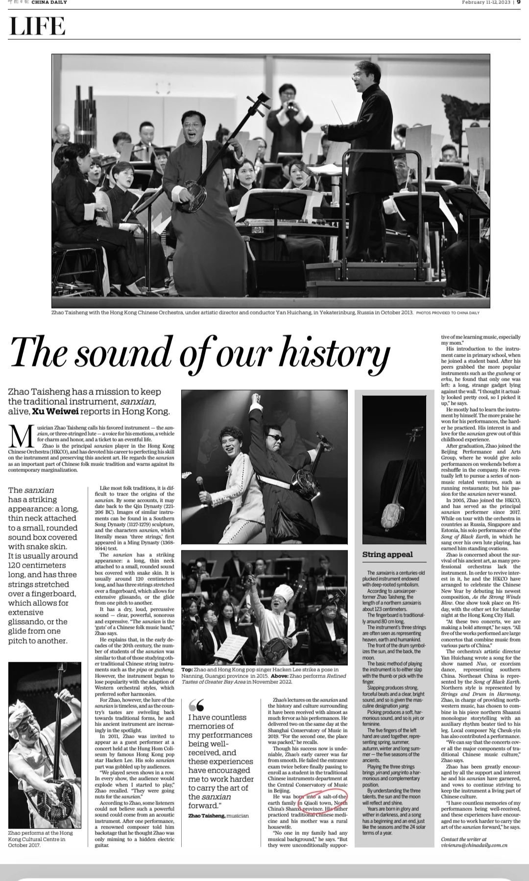 “赵太生是我中央音乐学院同学。作为香港中乐团的台柱子之一,他一直活跃在香港音乐舞台上,积极推动三弦演奏与教学。2月初香港中乐团举办了以他领衔的二场精彩震撼的三弦音乐盛宴。