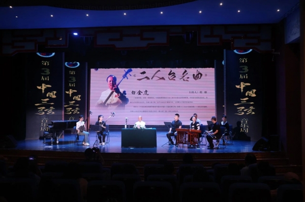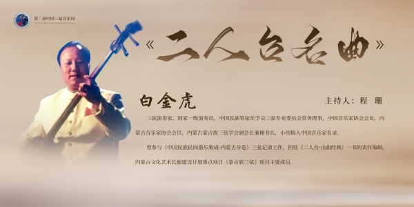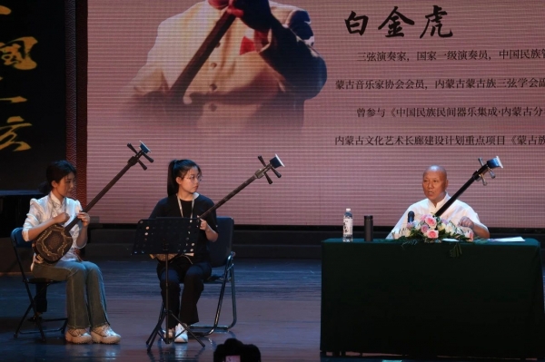 2023年7月25日9:00,第三届“中国三弦音乐周”学术活动——领春、白金虎教学公开课在内蒙古呼和浩特市乌力格尔艺术宫举行。本次教学公开课邀请到中国民族管弦乐学会三弦专业委员会常务副会长、蒙古族三弦学会会长、国家一级演奏员、领春老师及内蒙古三弦学会副会长、国家一级演奏员白金虎老师担任主讲,由三弦演奏家、首都师范大学音乐学院教师,中国民族管弦乐学会三弦专业委员会秘书长程珊老师担任主持。来自全国各地的三弦学子们齐聚一堂,座无虚席。