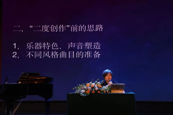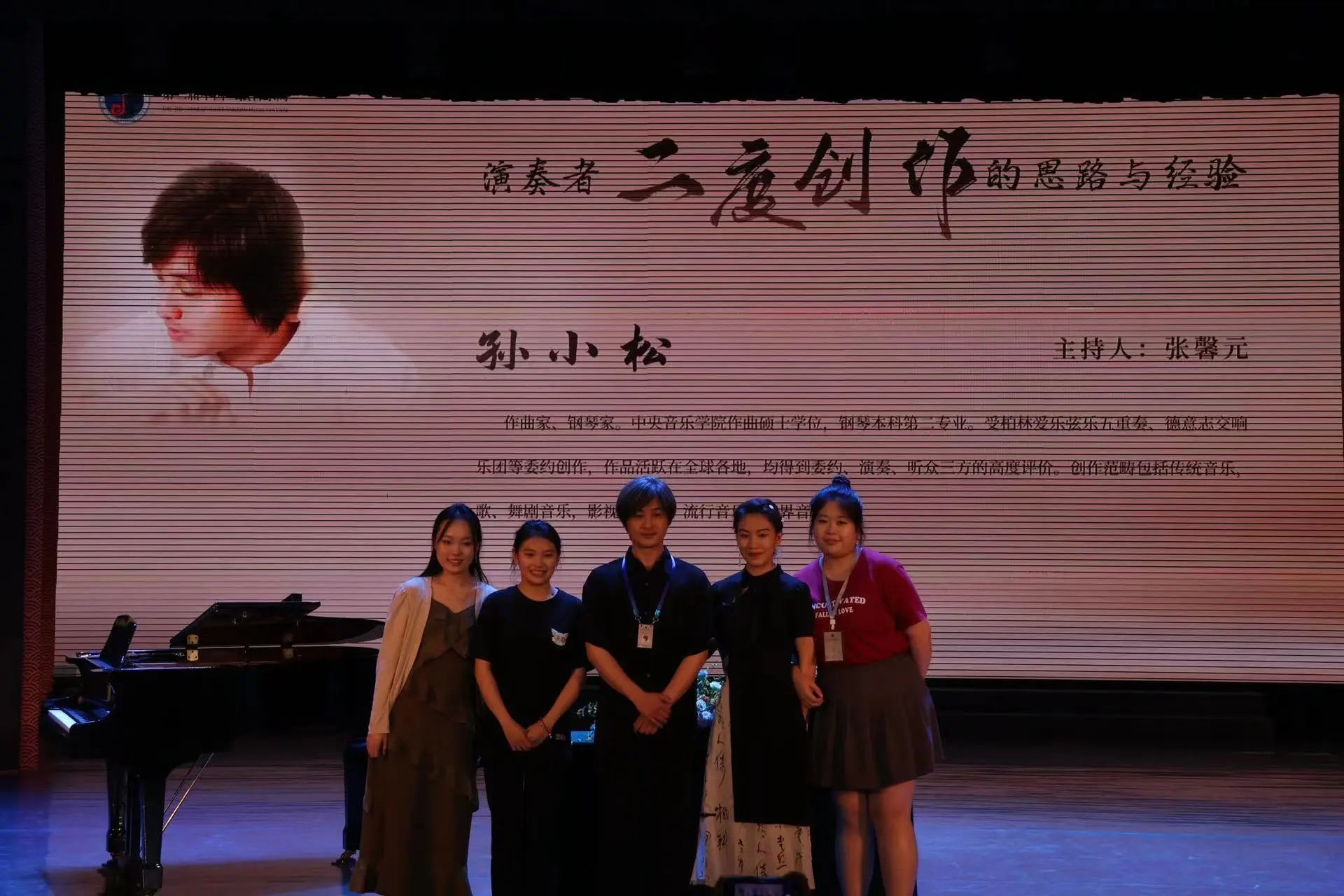 首先,作曲家孙小松老师围绕“二度创作”这一演奏者必修内容,进行多角度分析。由创作者与演奏者间的关系开始,到多元化思维,自我完善的重要性,作曲家强调了演奏者要“多听,多看,多学,多思考”,并就如何做一个合格的音乐从业者做了细致分析。