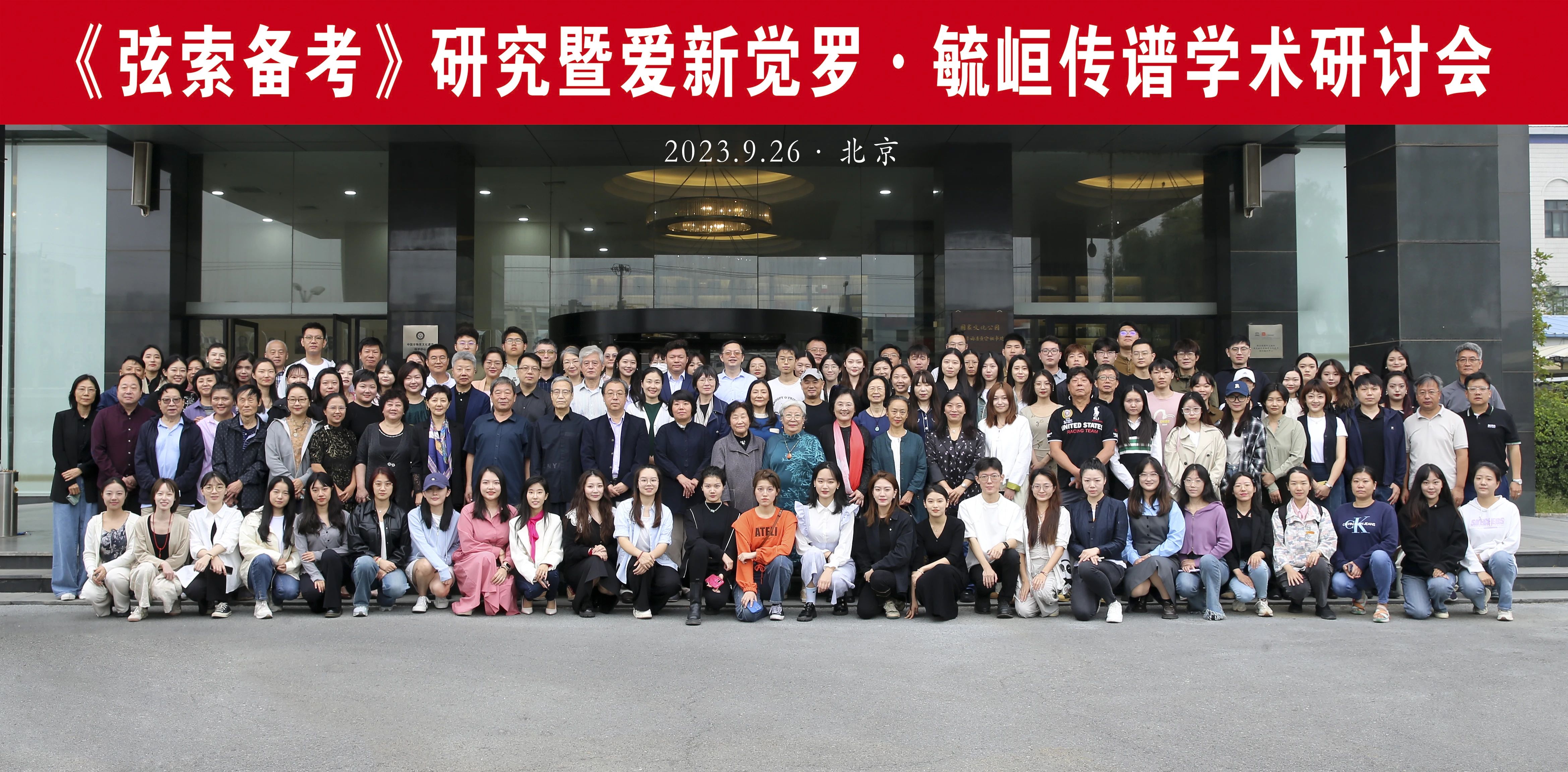 2023年9月26日由中国艺术研究院音乐研究所与中国民族管弦乐学会三弦专业委员会共同主办的“《弦索备考》研究暨爱新觉罗·毓峘传谱学术研讨会”在北京成功举办。中国艺术研究院副院长喻静女士;中国民族管弦乐学会副会长兼秘书长赵东升先生;中国艺术研究院音乐研究所所长李宏峰研究员和副所长冯卓慧研究员;中央音乐学院民乐系系主任章红艳教授;爱新觉罗·毓峘先生的夫人朱维华女士;中国民族管弦乐学会三弦专业委员会名誉会长谈龙建和常务副会长领春;中国艺术研究院音乐研究所项阳研究员、薛艺兵研究员、李玫研究员;中央音乐学院褚历教授、王宇琪教授;中国音乐学院刘勇教授;中国戏曲学院洪伟教授;《人民音乐》荣英涛先生;《音乐周报》卢旸女士;《乐器》孟建军先生,以及约150名来自各艺术院校、文艺团体乃至全国各地的专家学者、演奏家、教育家、媒体记者以及众多在读学子出席了研讨会。