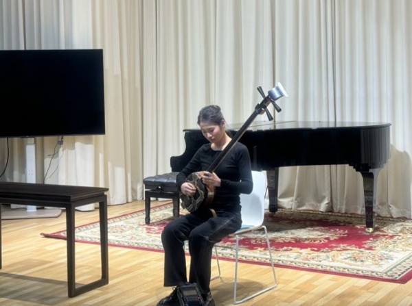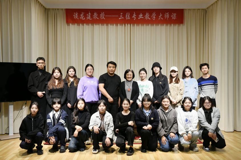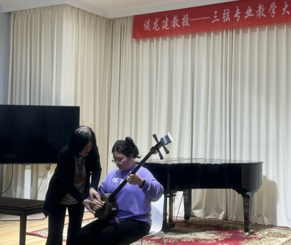 10月28日下午14:30,谈龙建教授大师课于西安乐希音艺术中心开讲传授。本次讲讨由西安音乐学院民乐系副教授高伟老师及西安音乐学院全体三弦学生共同参与。其中,8位学生毛遂自荐,进行现场演奏,谈龙建教授就各位同学的演奏情况着手,结合扎根三弦艺术多年的教育轻验,辨症施治,因材施教,以幽默风趣的语言结合严谨科学的理念,现场化解了不同年级学生在三弦学习中的技术漏洞、心理负担,并针对不同技法运用提供了思维方面的启示。