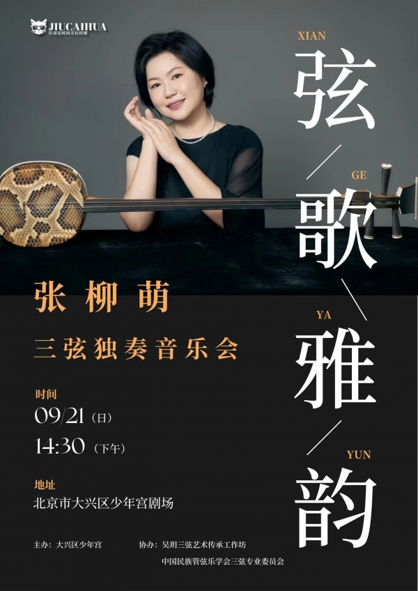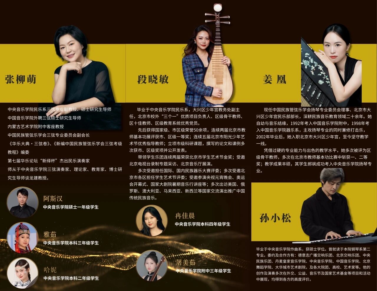 2025 年 9 ⽉ 21 ⽇中央⾳乐学院张柳萌副教授在北京市⼤兴区少年宫举办三弦讲演⾳乐会。