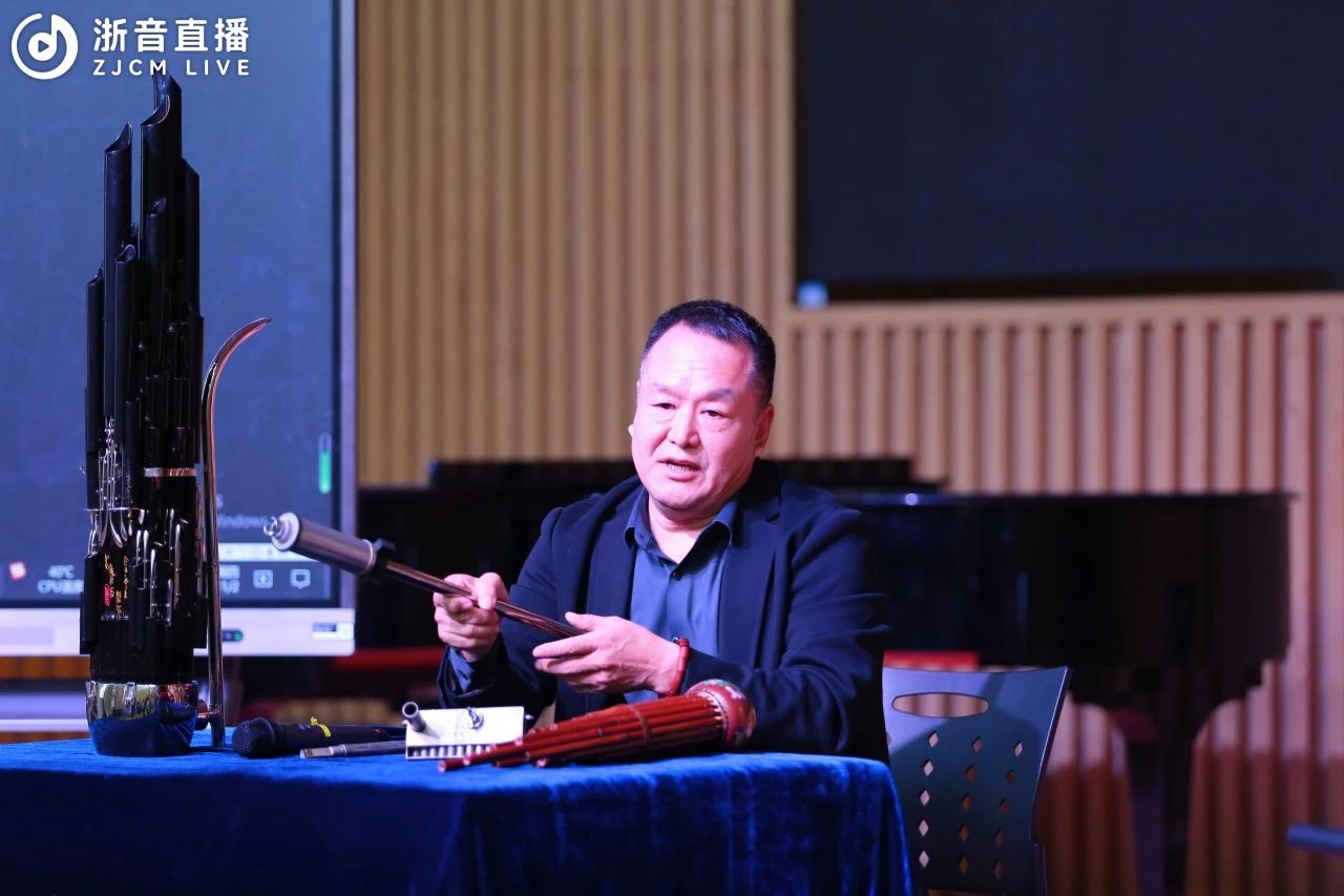 11月2日,笙学会荣誉理事、中国民族吹管乐研究小组组长、制作委员会副会长、非物质文化遗产传承人、中国民乐十大制作师之一的赵宏亮老师受“大樂永和 浙江音乐学院第八届国乐艺术节”邀请,在浙江音乐学院6A楼B205国乐厅给国乐系师生们做了“谈中低音笙的改良”学术讲座。