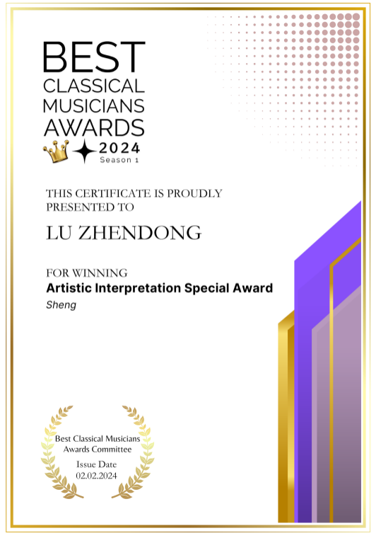 近日,2024“最佳古典音乐家奖”落下帷幕,超过20个国家的选手参与了这一次的比赛。中央音乐学院民乐系硕士研究生陆振东在里面分别获得了钻石奖和艺术演绎特别奖两项奖项,是此次比赛中民族音乐组(世界各民族器乐、声乐)唯一的钻石奖,也是此次比赛唯一获得钻石奖的中国选手。