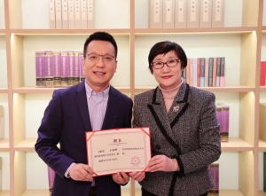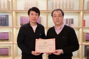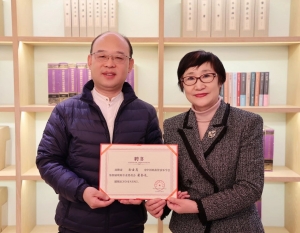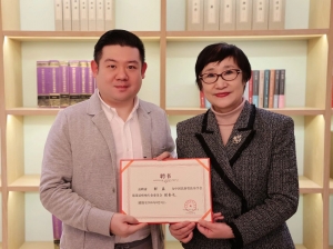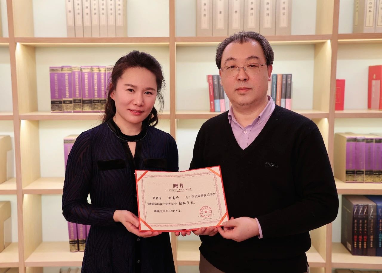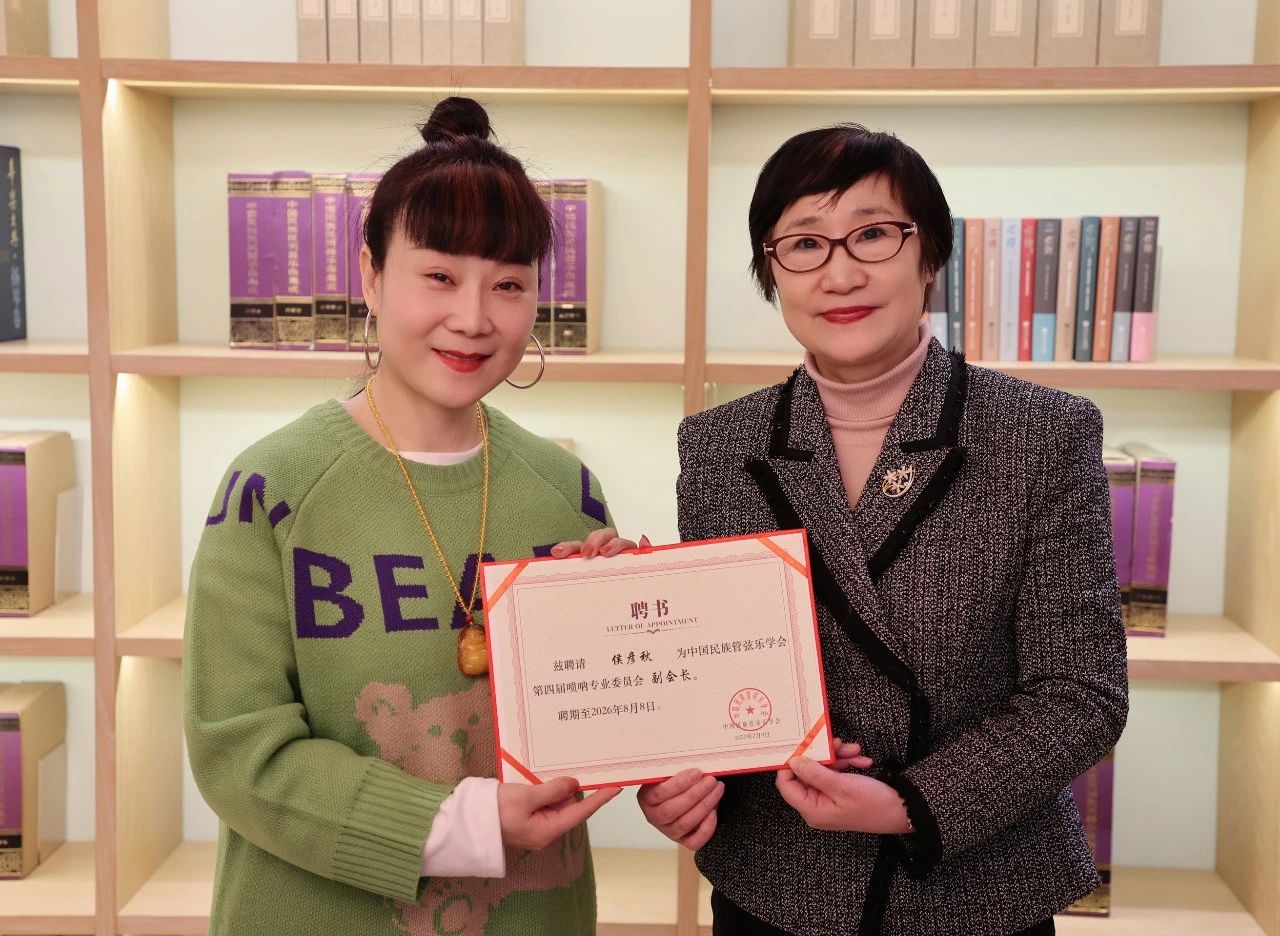 吴玉霞会长为第四届唢呐专业委员会副会长鄢磊颁发聘书