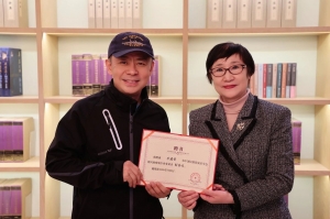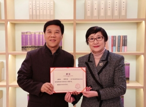 吴玉霞会长为第四届唢呐专业委员会副会长周东朝颁发聘书