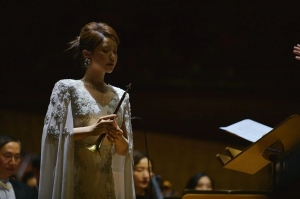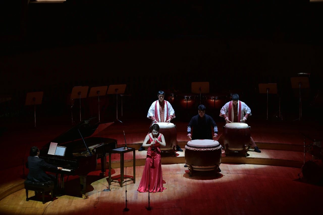 乐曲层次分明,中段的中国大鼓予以了作品鲜明的民族气质。刘雯雯扎实深厚的演奏功力,让观众在她长达40个小节的长音吹奏中叹为观止,密集的音符令人头晕目眩,引来掌声不断。