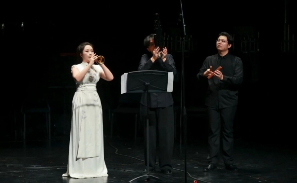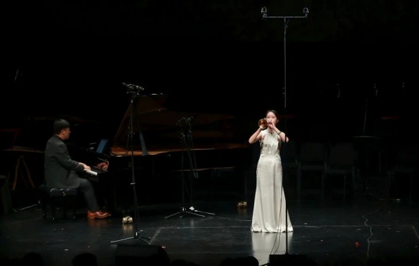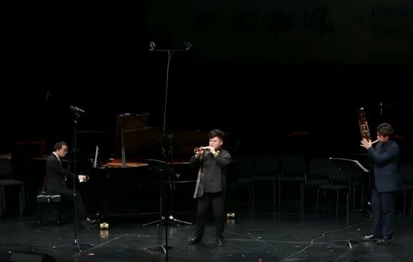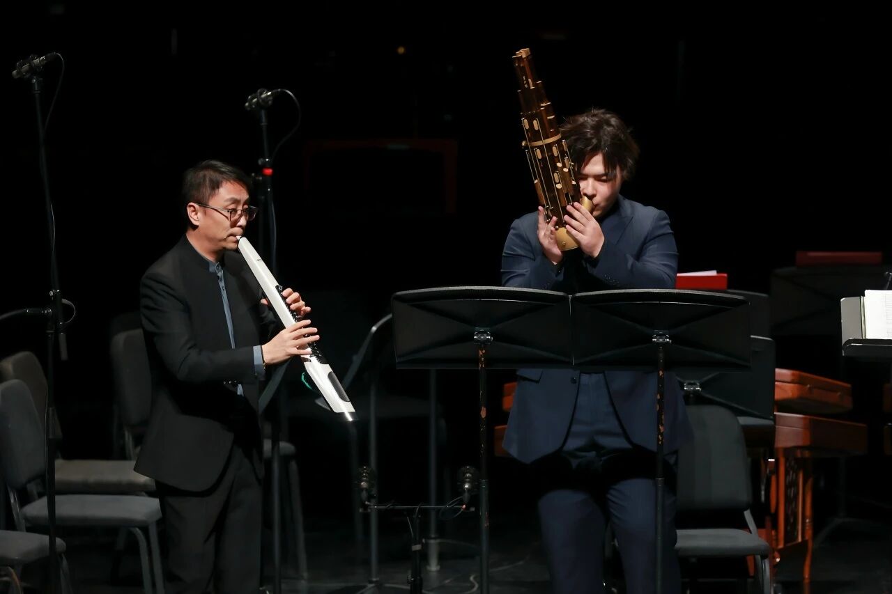 同时,本场音乐会邀请到了著名的中国电吹管演奏家武笑辉老师,用电吹管演奏了唢呐曲目《喜庆丰收年》,展现了传统与现代电子音乐的融合。