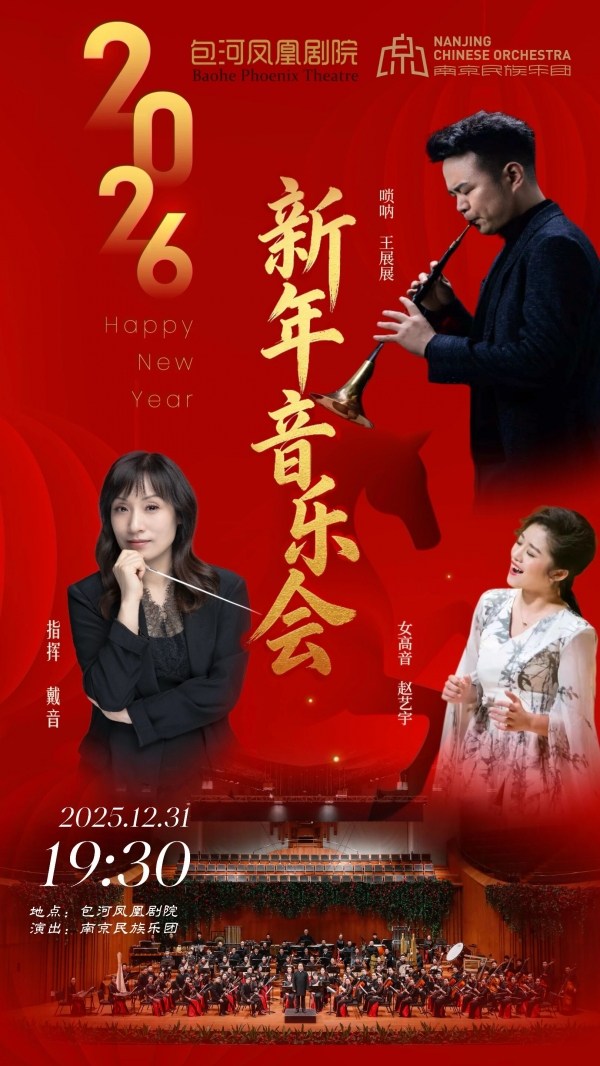 包河凤凰剧院2026跨年新年音乐会将邀请南京民族乐团隆重献演,用民族音乐奏响辞旧迎新的乐章以器乐的波澜壮阔,开启崭新一年的篇章!