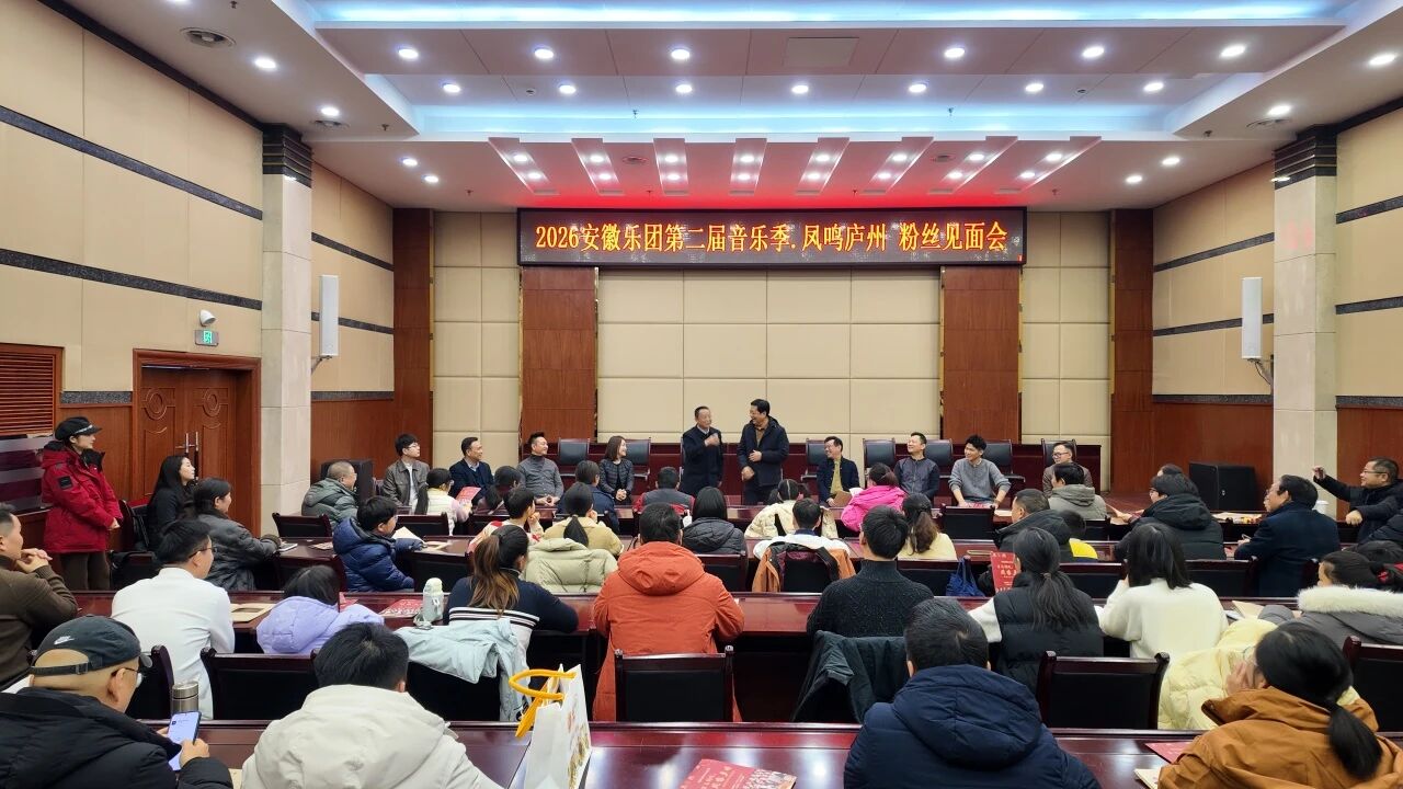 演出当日下午,安徽乐团特邀多位参演唢呐名家与乐迷见面交流。现场气氛热烈,来自省内外的民乐爱好者济济一堂,围绕唢呐艺术的演奏技巧、作品创作与当代发展踊跃提问。名家们结合自身艺术经历,深入浅出地分享真知灼见,现场笑声与掌声交织。乐团负责人充分听取粉丝的意见和建议,表示将持续推出高质量演出,并特别邀请大家加入官方乐迷群,未来将为乐迷朋友们提供专属福利、幕后资讯及更多互动机会,共同构建音乐爱好者的交流家园。