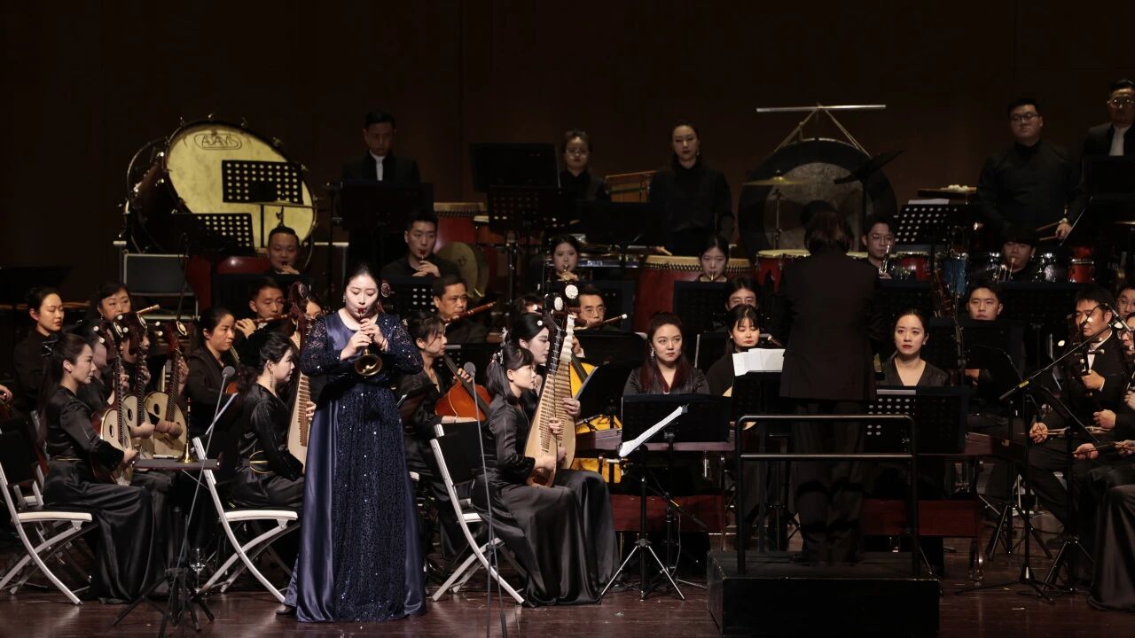当晚,安徽乐团民族管弦乐团精彩协奏,安徽乐团民族管弦乐团艺术总监、著名指挥家李复斌执棒,上海音乐学院教授、博导刘红担任导聆。演出在《万年欢》喜庆热烈的旋律中拉开帷幕,由上海音乐学院五位学子联袂领奏,瞬间点燃全场气氛。