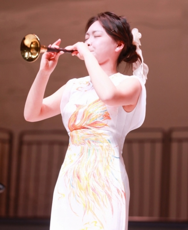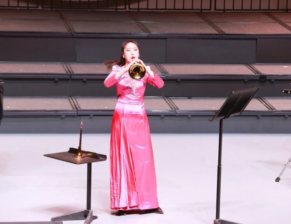 在“焦桐丹心”唢呐教学汇报音乐会上,中国音乐学院研究生一年级朱可欣携手许浩、杨博雯同学共同演绎唢呐作品《朝天歌》。该曲是王丹红大型民族管弦乐组曲《永远的山丹丹》第七乐章,以陕北音乐为创作素材,紧扣党中央、毛主席在陕北工作生活十三年的时代背景,凝萃陕北人民对唢呐的眷恋与执着,勾勒黄土地的生活百态,绘就出波澜壮阔的陕北史诗,兼具鲜明的地域特色与深厚的时代内涵。演奏中,三位表演者配合默契,乐声贴合乐曲的情感表达,将陕北音乐的苍劲与婉转诠释得当,让观众在乐声中感受陕北民乐的独特韵味与非遗艺术的当代表达。